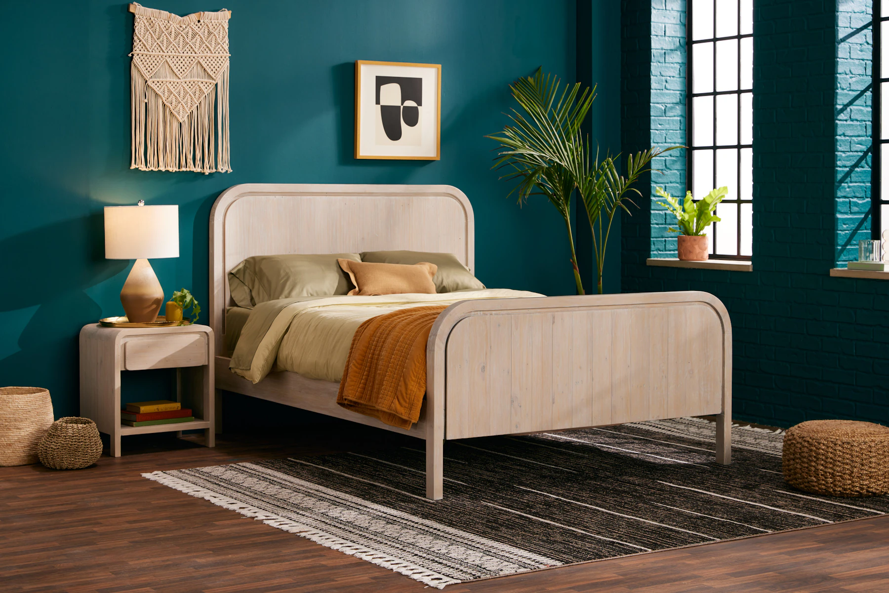 With its curved head and foot boards, the Everson brings a touch of organic softness to the bedroom. Perfect for boho and modern lovers alike, this effortlessly chic bed looks great on its own, or as a set when paired with the matching nightstand and dresser.