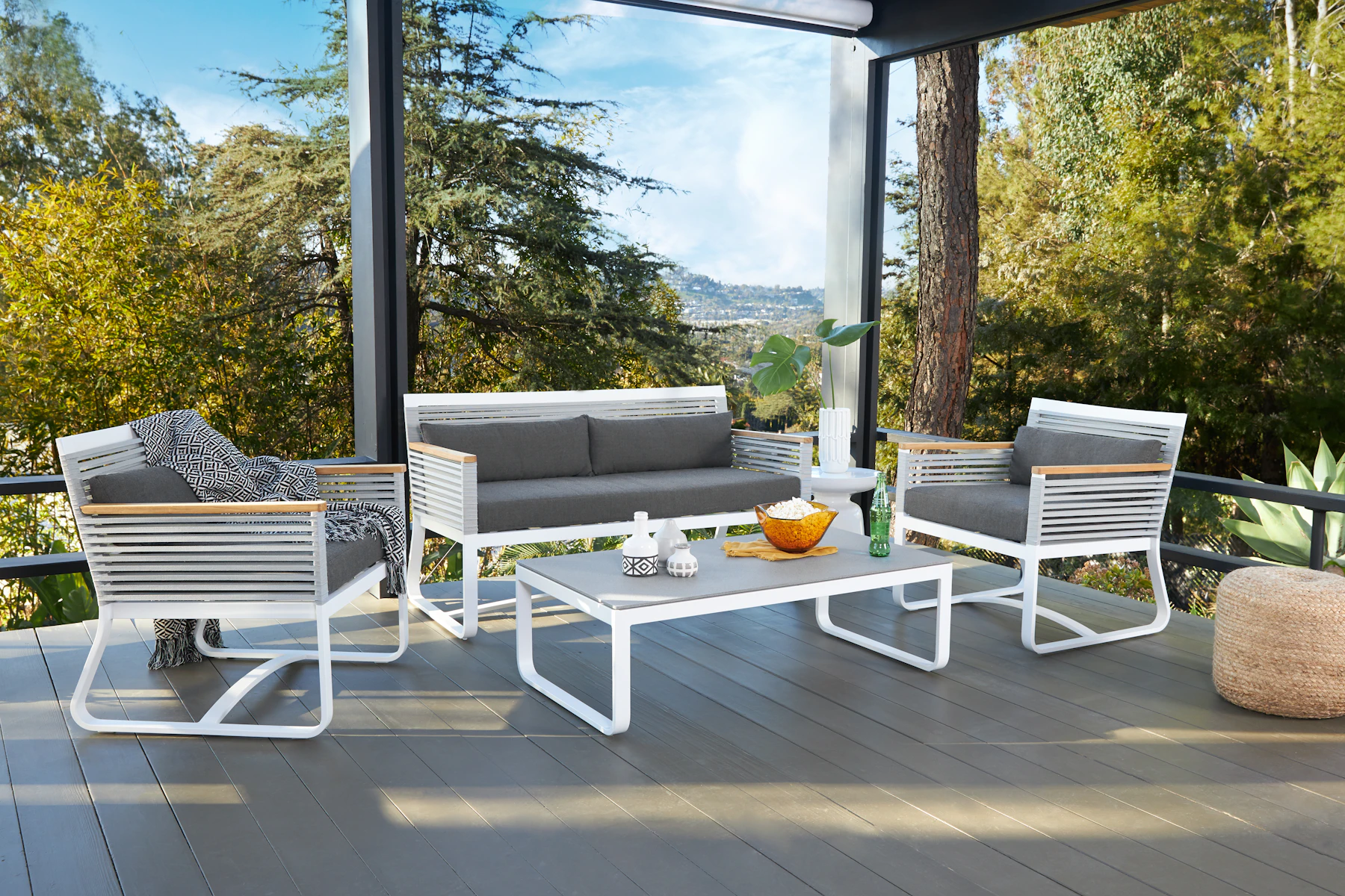 The star of your modern furniture daydreams, with sleek lines, U-shaped legs, and a contrasting gray top, your outdoor soirees just got a whole lot more stylish.