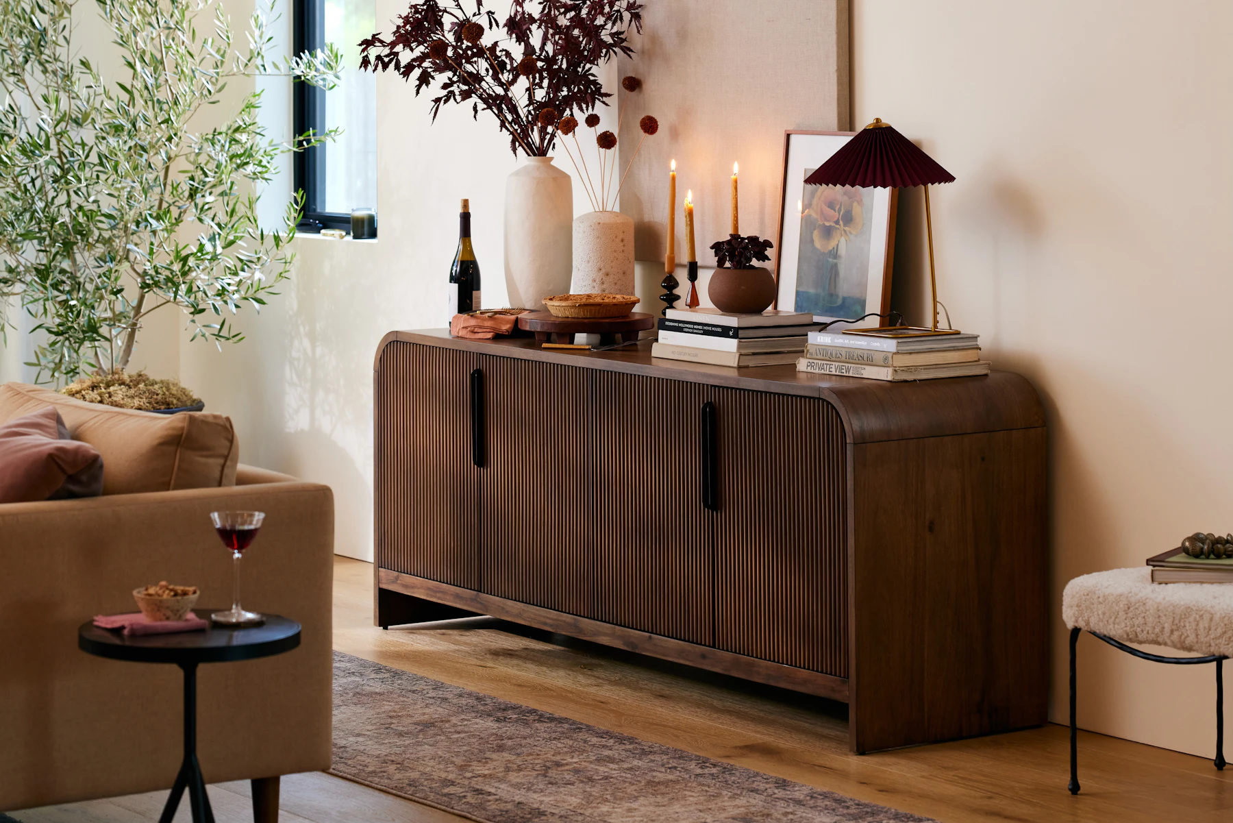 Whether you use it in your bedroom to store your linens and knits, or in the living room as part of your entertainment area, the Adele’s four doors with burnished black handles open to reveal spacious shelving, providing you with ample space to keep all your prized possessions tucked away.